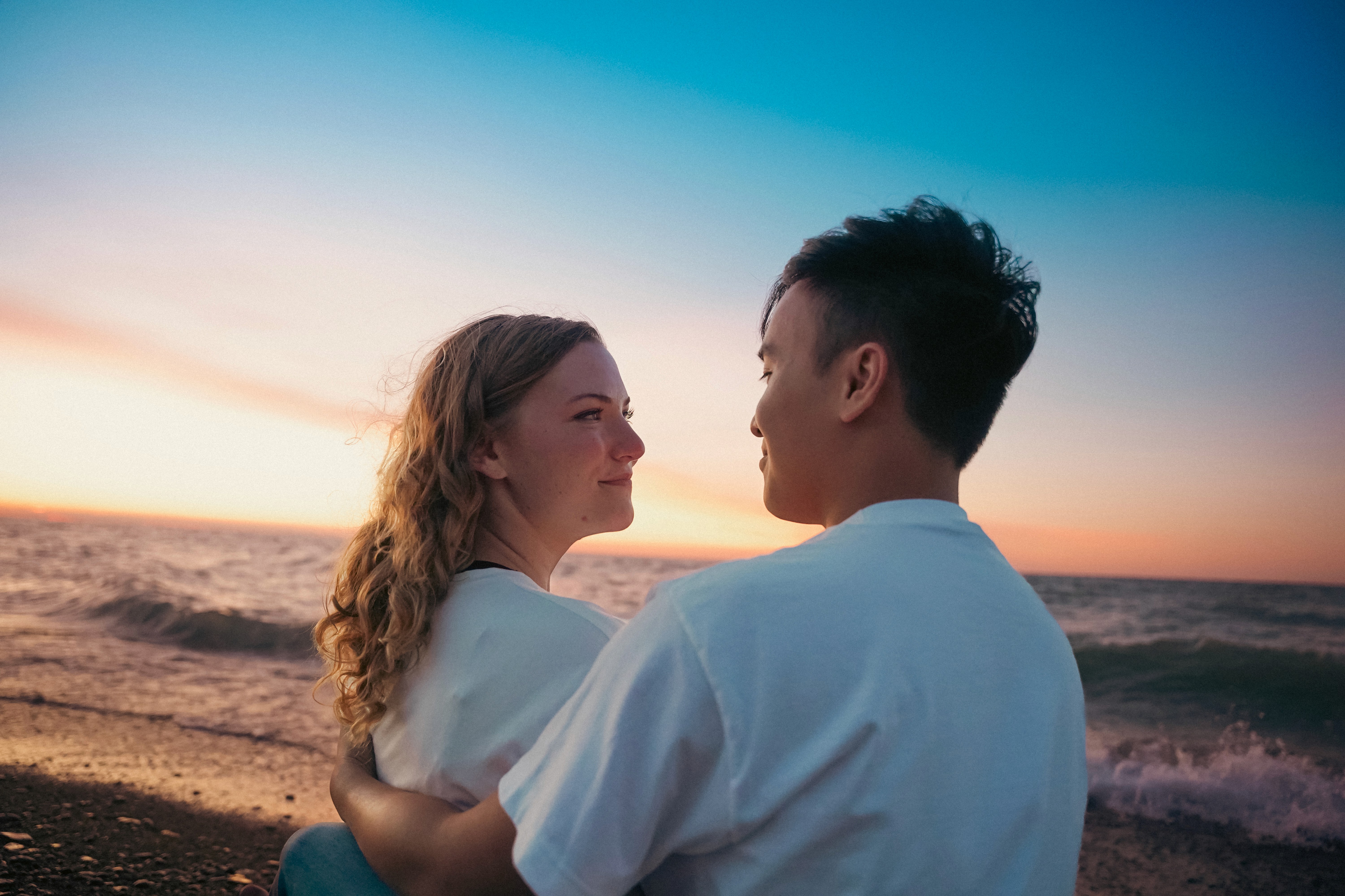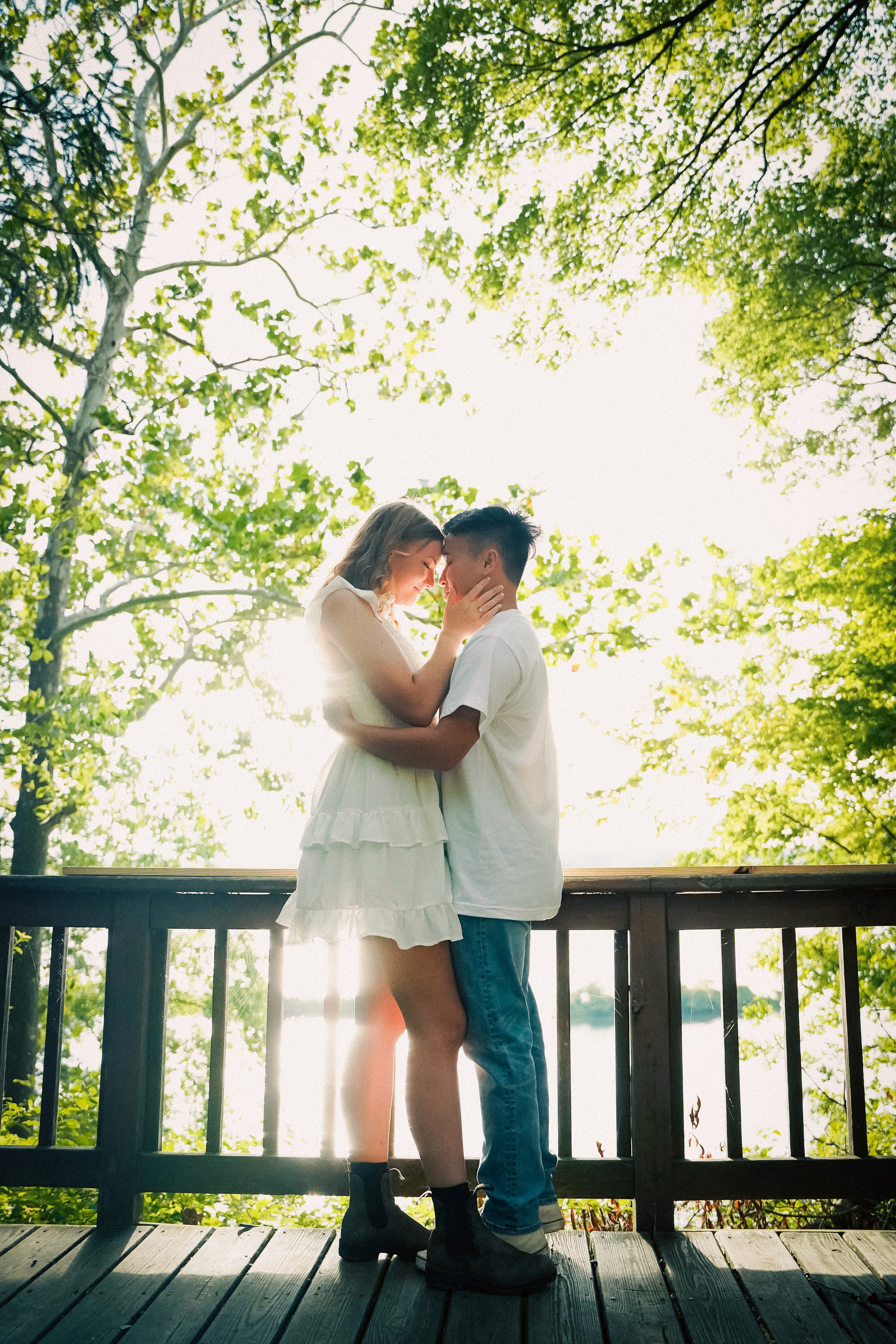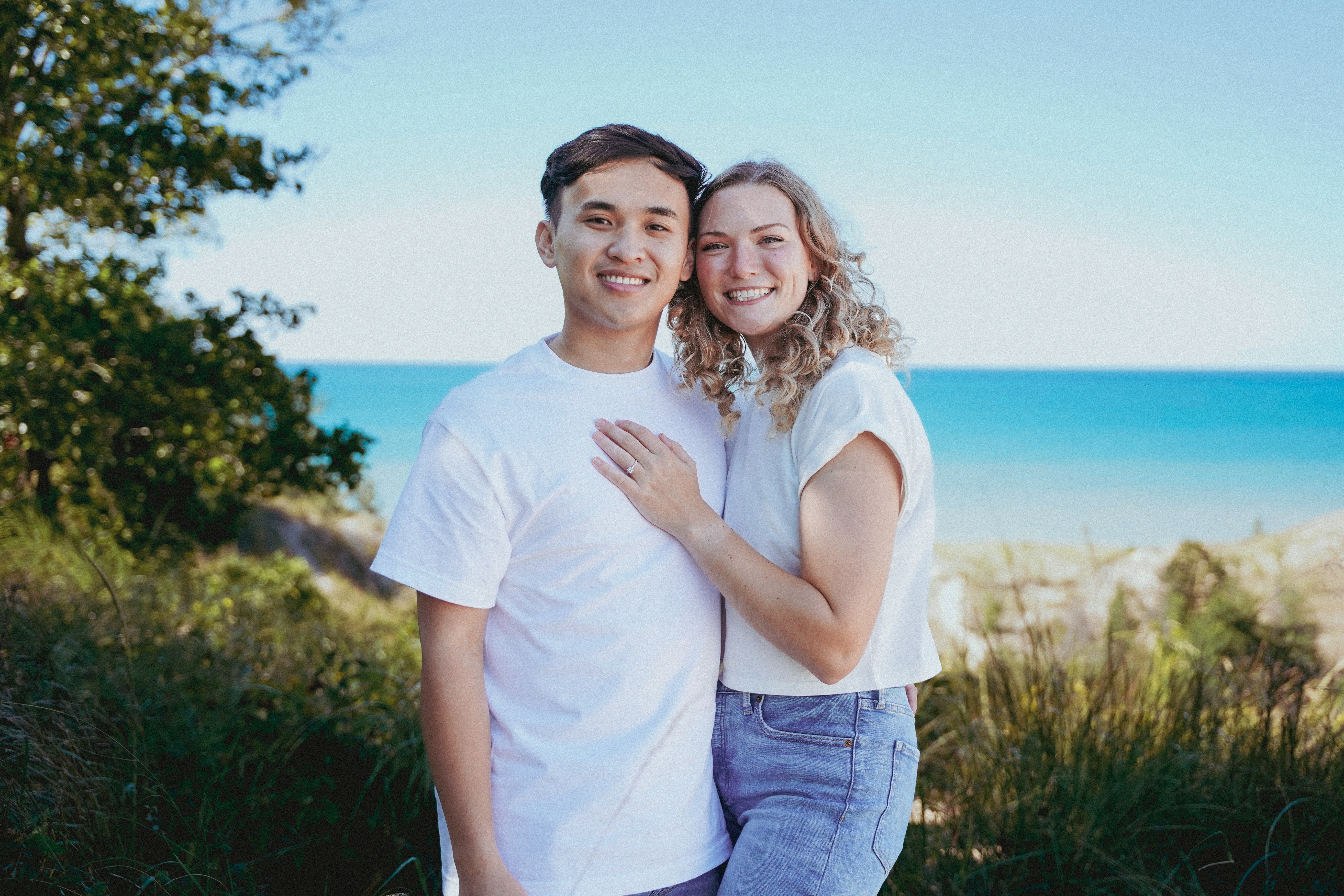 To honor that memory, their shoot took place in the heart of a forest and along the serene shores of the Indiana Dunes, landscapes that mirror both their journey and who they are together. The quiet strength of the woods reflects Hong’s grounded nature, while the open, golden shoreline captures Bridget’s warmth and radiance. Every frame celebrates the significance of their story: two souls finding their rhythm, one adventure at a time.